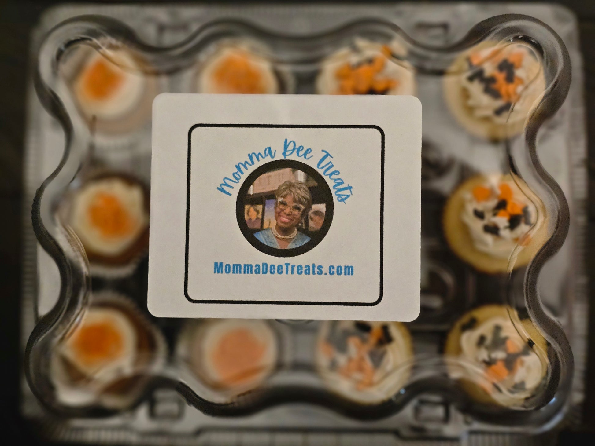 6 Bite-sized velvety pumpkin pound cake muffins blended with cinnamon, nutmeg, ginger, and cloves, topped with cream cheese icing and vanilla sugar.